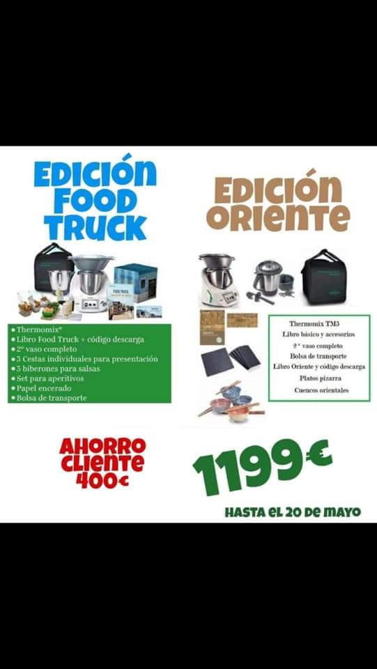 Hola a tod@s, ahora tenemos esta gran oportunidad con Tm5, puedes tenérla por sólo 1199€, con doble vaso, bolsa de transporte y podrás elegir entre dos ediciones magnífica; Food Truck, comida rápida y de gran variedad de paises o edición oriente con gran varidad de comida como Tuca, India, Tailandesa, China o Japonesa.
