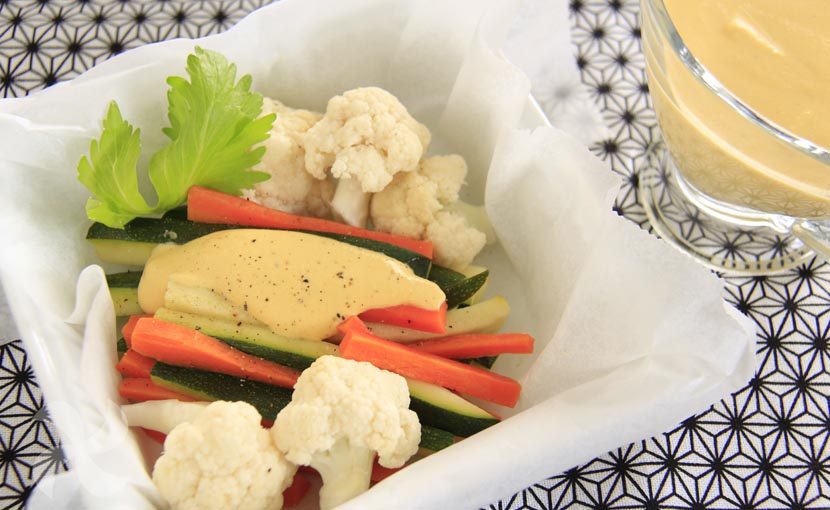 ¿Qué os parece si nos cuidamos un poco antes de la Navidad? Para contrarrestar los futuros excesos, os hemos preparado unas verduras al vapor con salsa de almendras que no lleva nata ni ningún otro lácteo.
