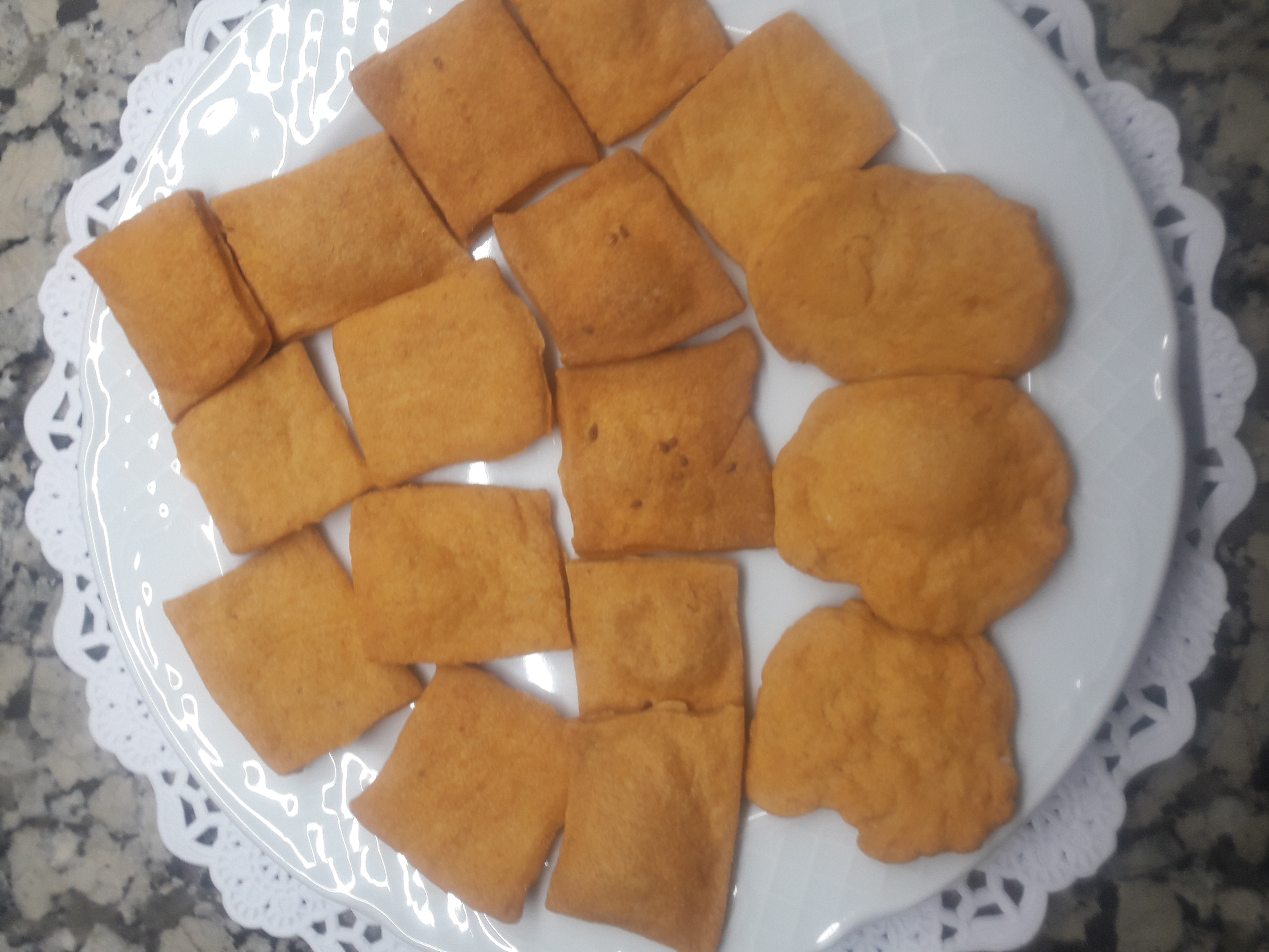 DE CADA UNA DE LAS BOLAS... UNA VEZ ESTIRADA CORTE ...SEGUN AL GUSTO .... 5,o 10 cm... PONGA POR ENCIMA SAL GORDA Y HORNE CADA TANTA DE 25a 30 min. , o elige la forma que tu quieras darle a las regañas DEJE ENFRIAR Y LISTO.